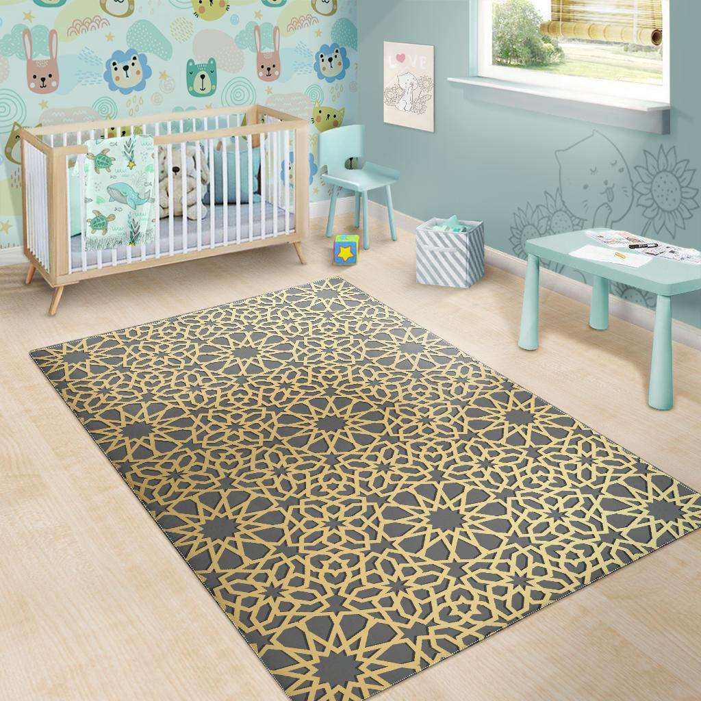 arabic star gold pattern Area Rug