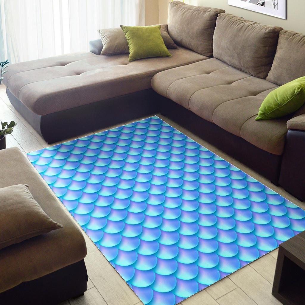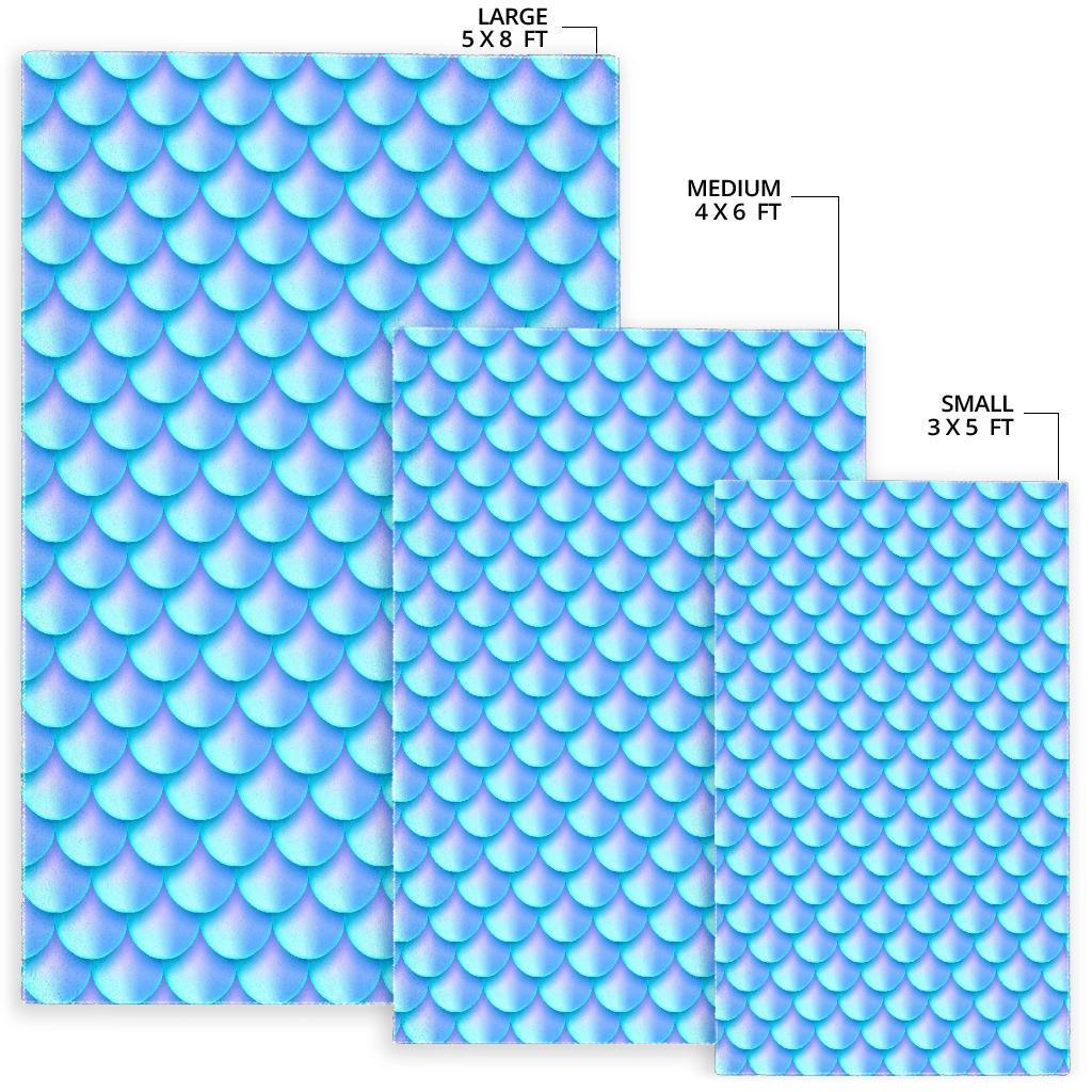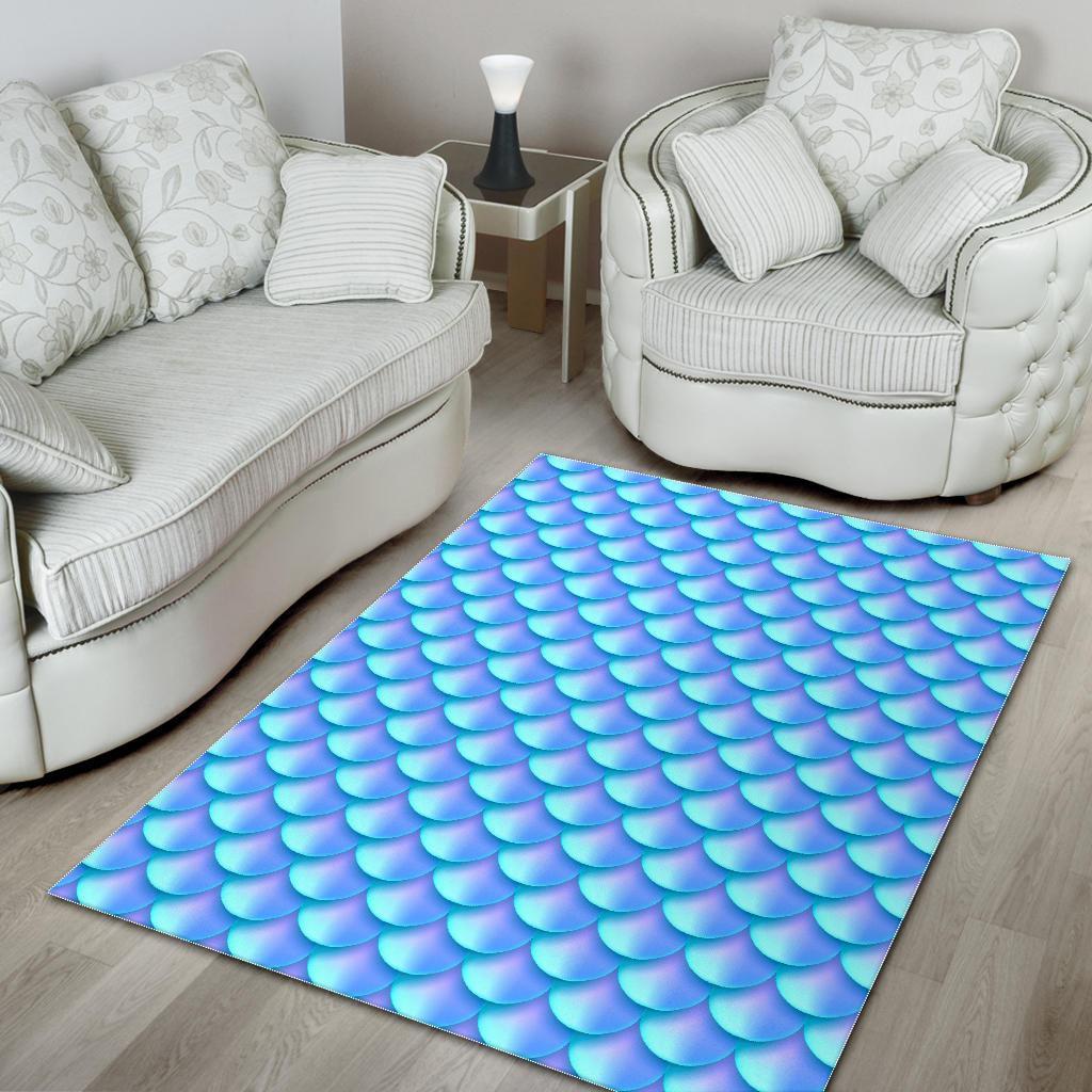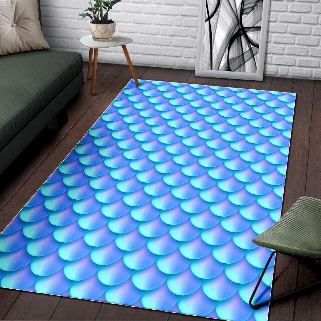 Blue Neon Mermaid Scales Pattern Print Area Rug