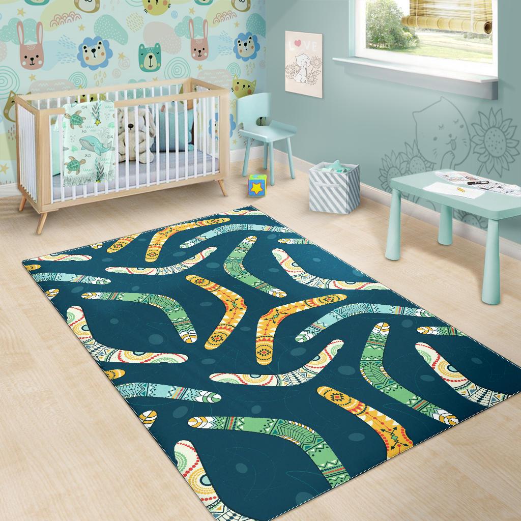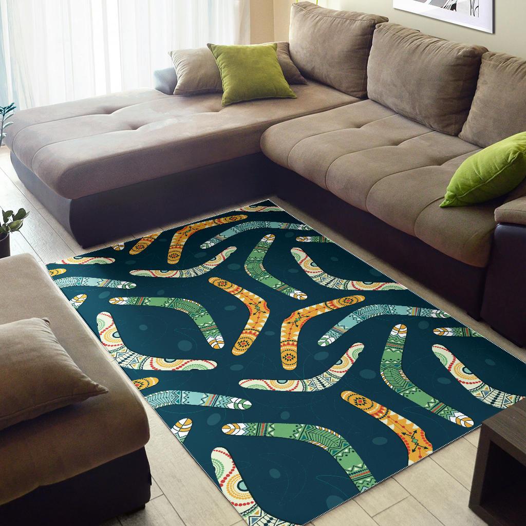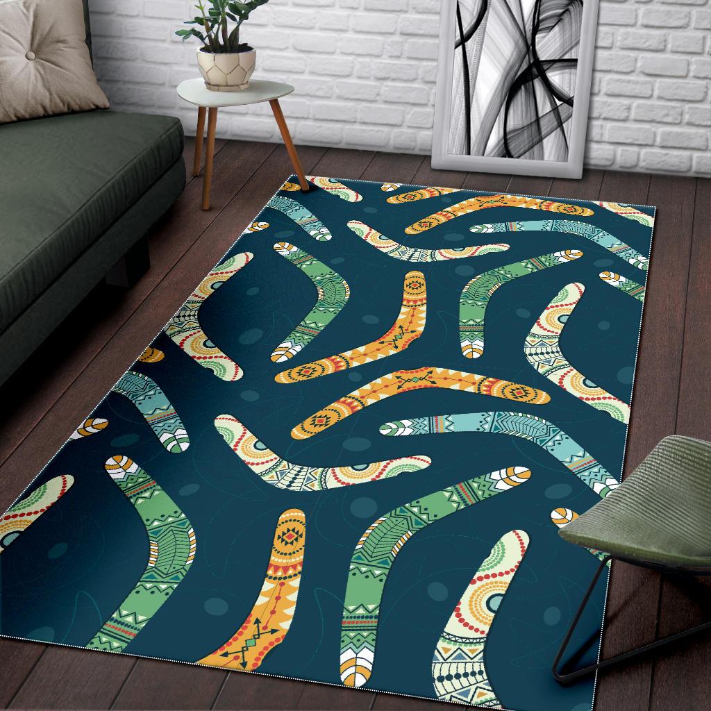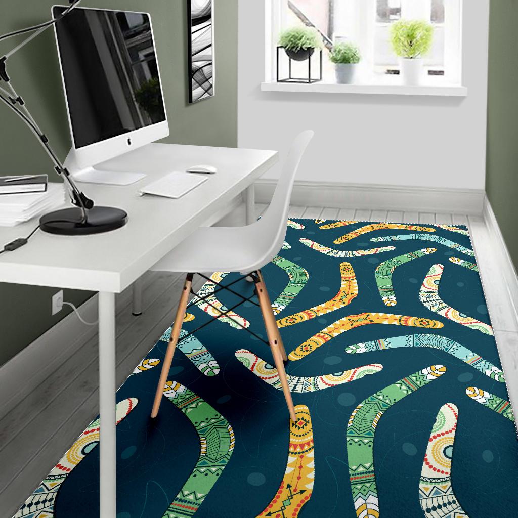 Boomerang Aboriginal Pattern Dark Background Area Rug