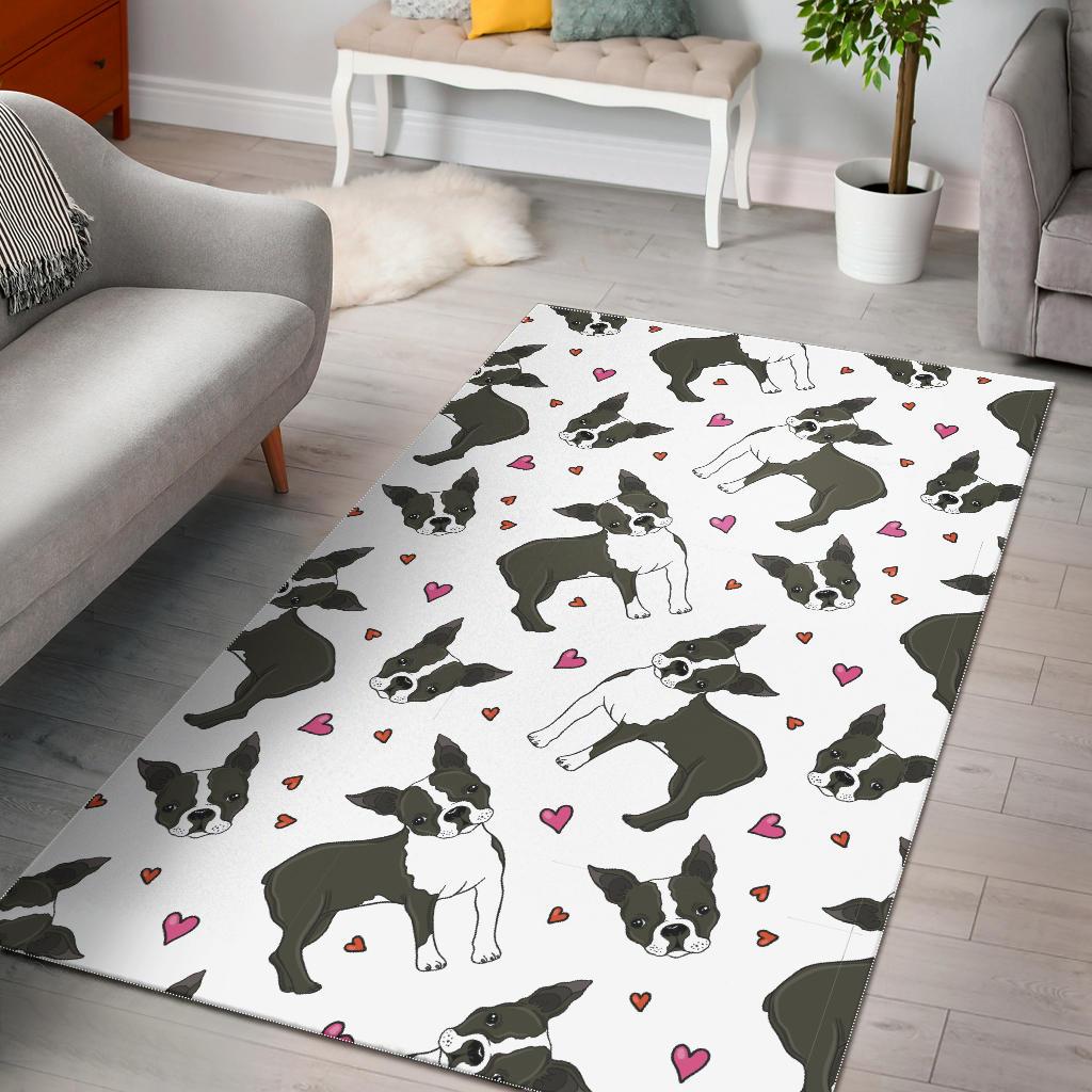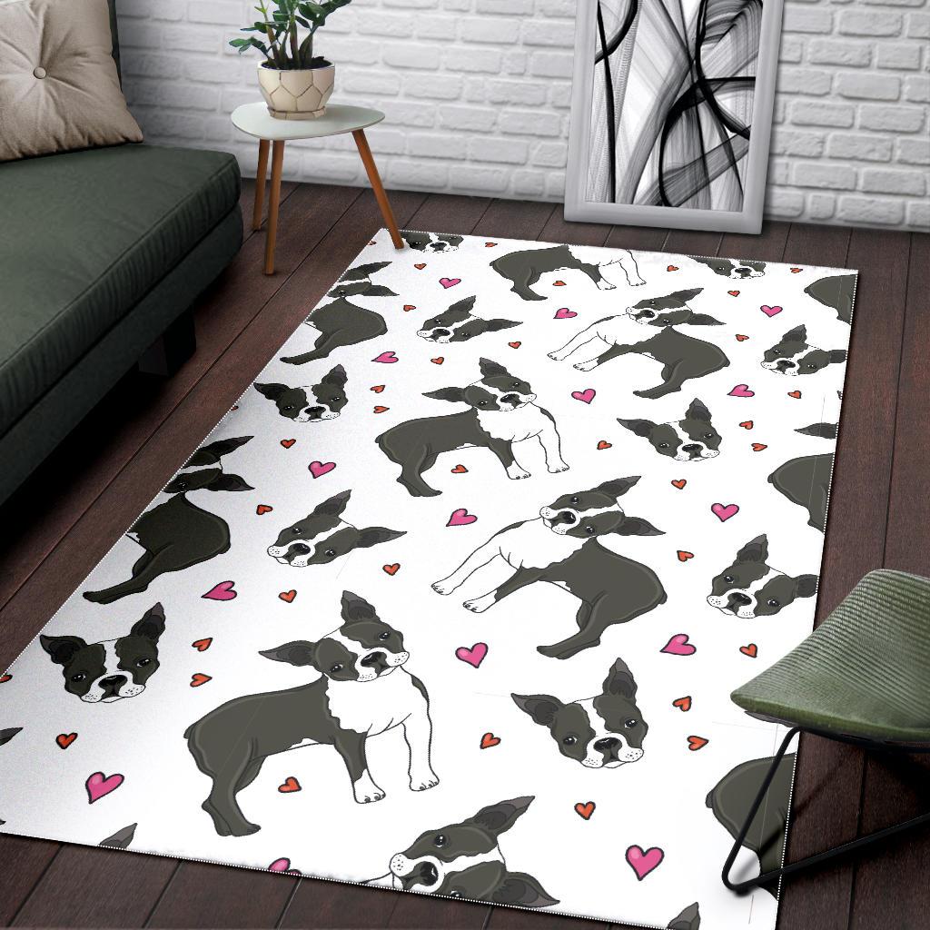 • Load image into Gallery viewer, Boston terrier dog hearts vector pattern Area Rug