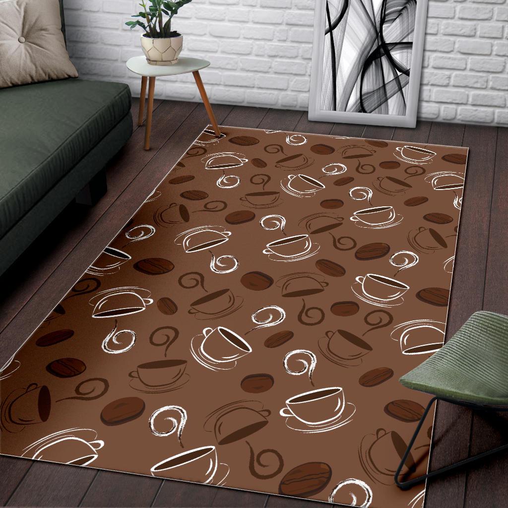 Coffee Cup and Coffe Bean Pattern Area Rug