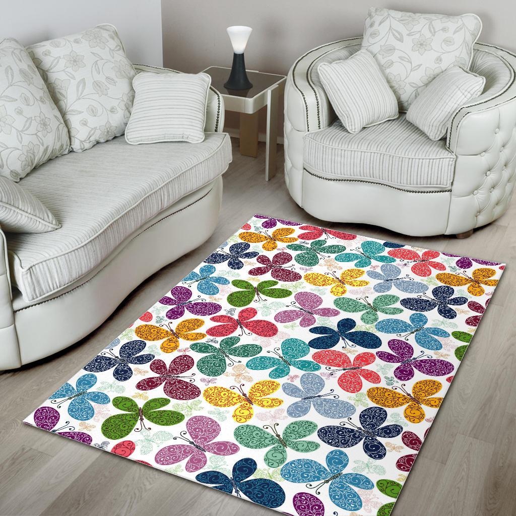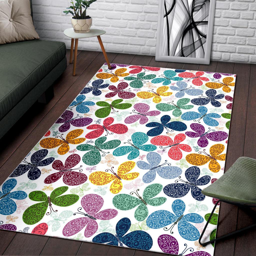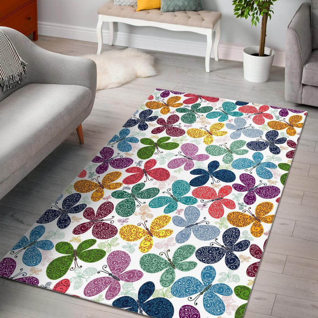 Colorful Butterfly Pattern Area Rug