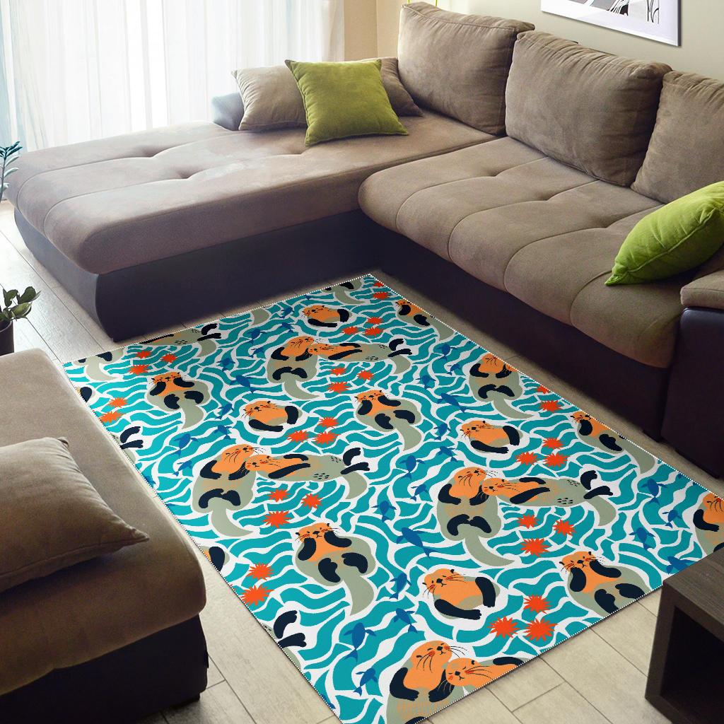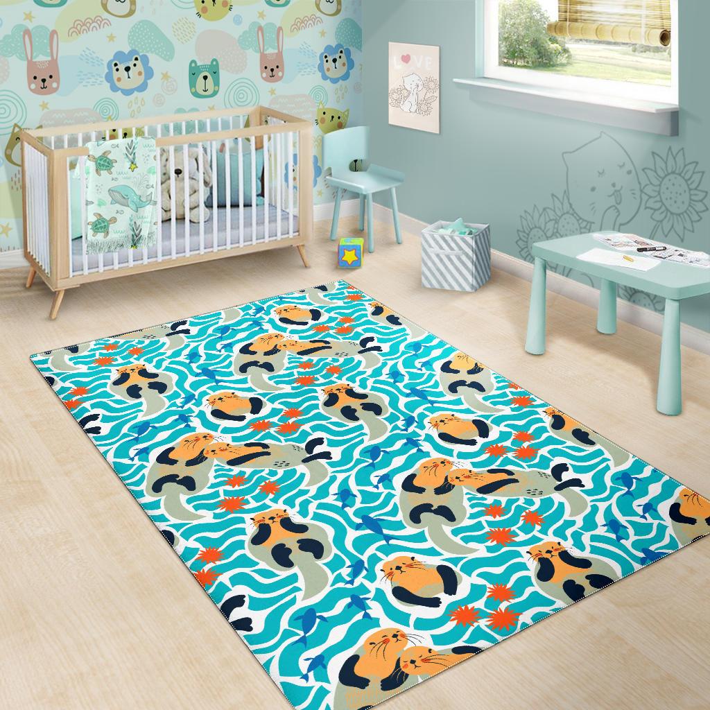 • Load image into Gallery viewer, Cute sea otters fishe sea urchin pattern Area Rug