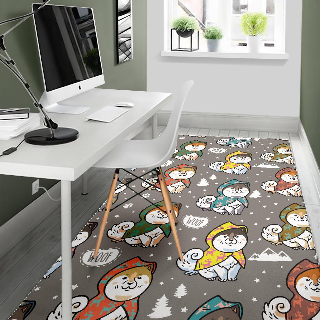 Cute Siberian Husky Raincoat Pattern Area Rug