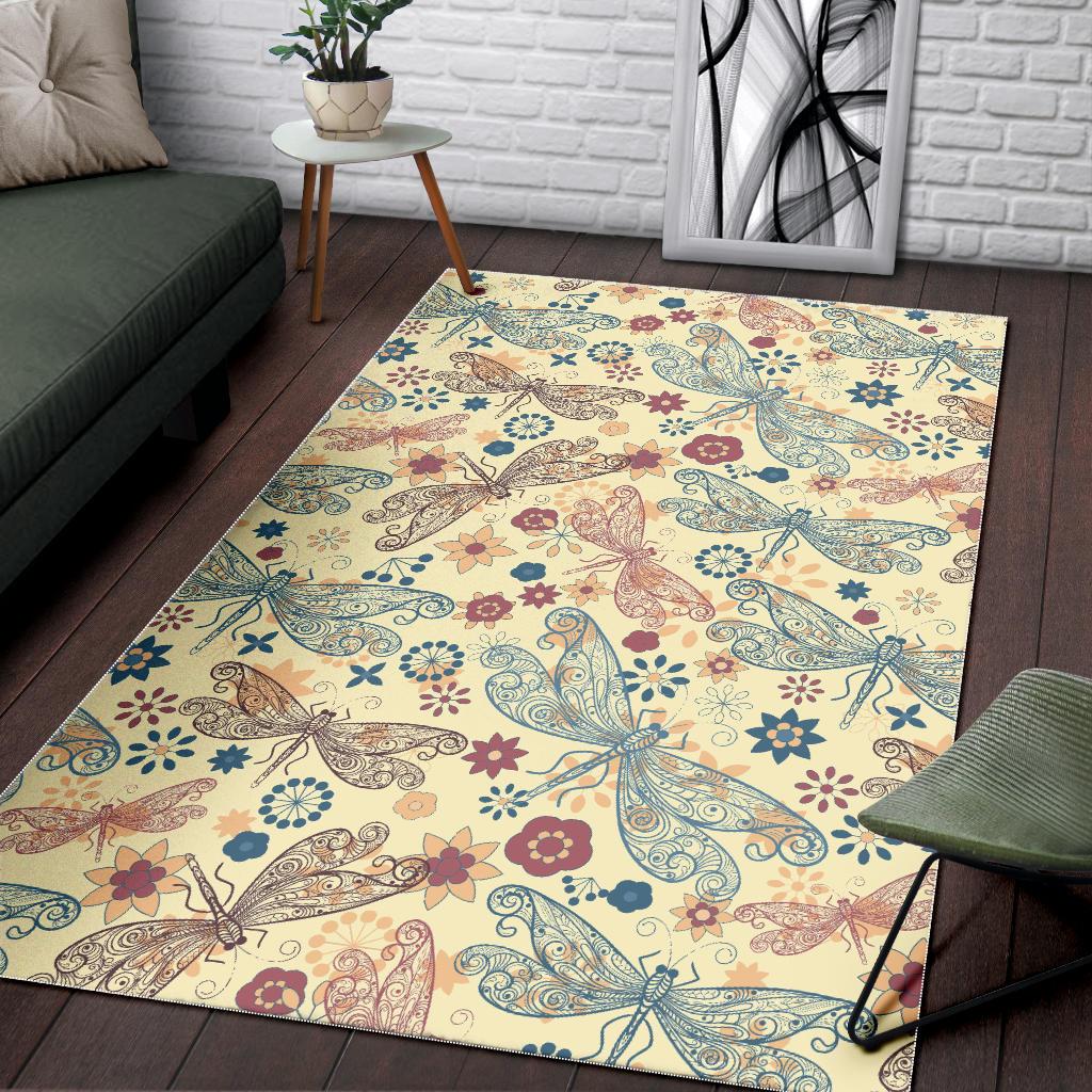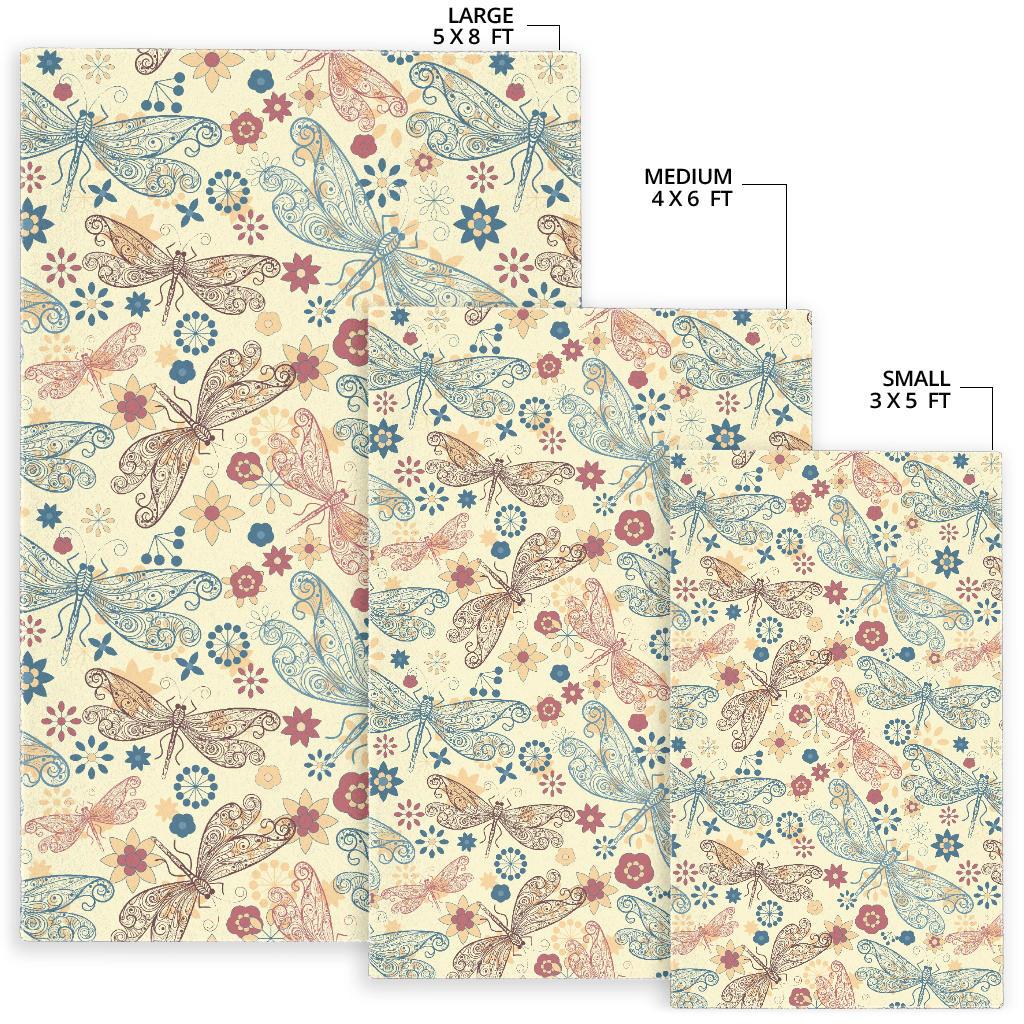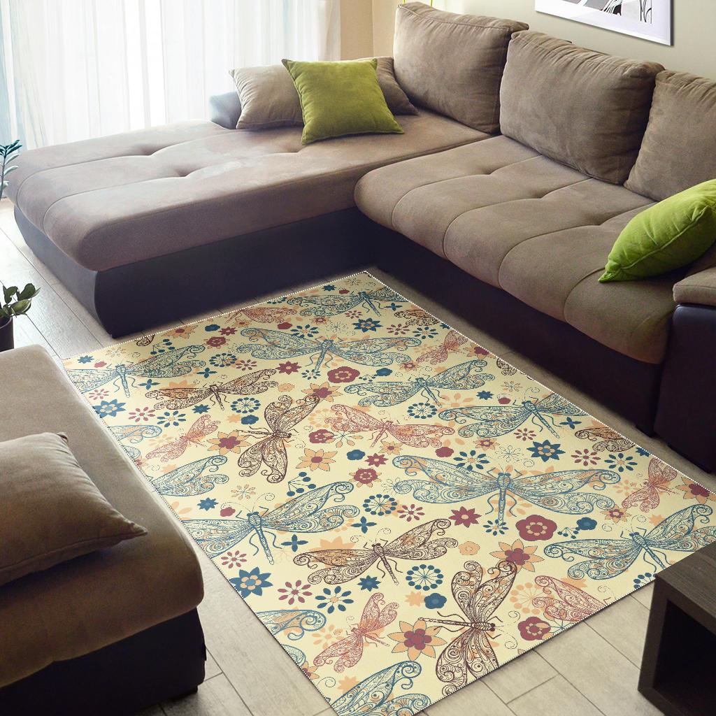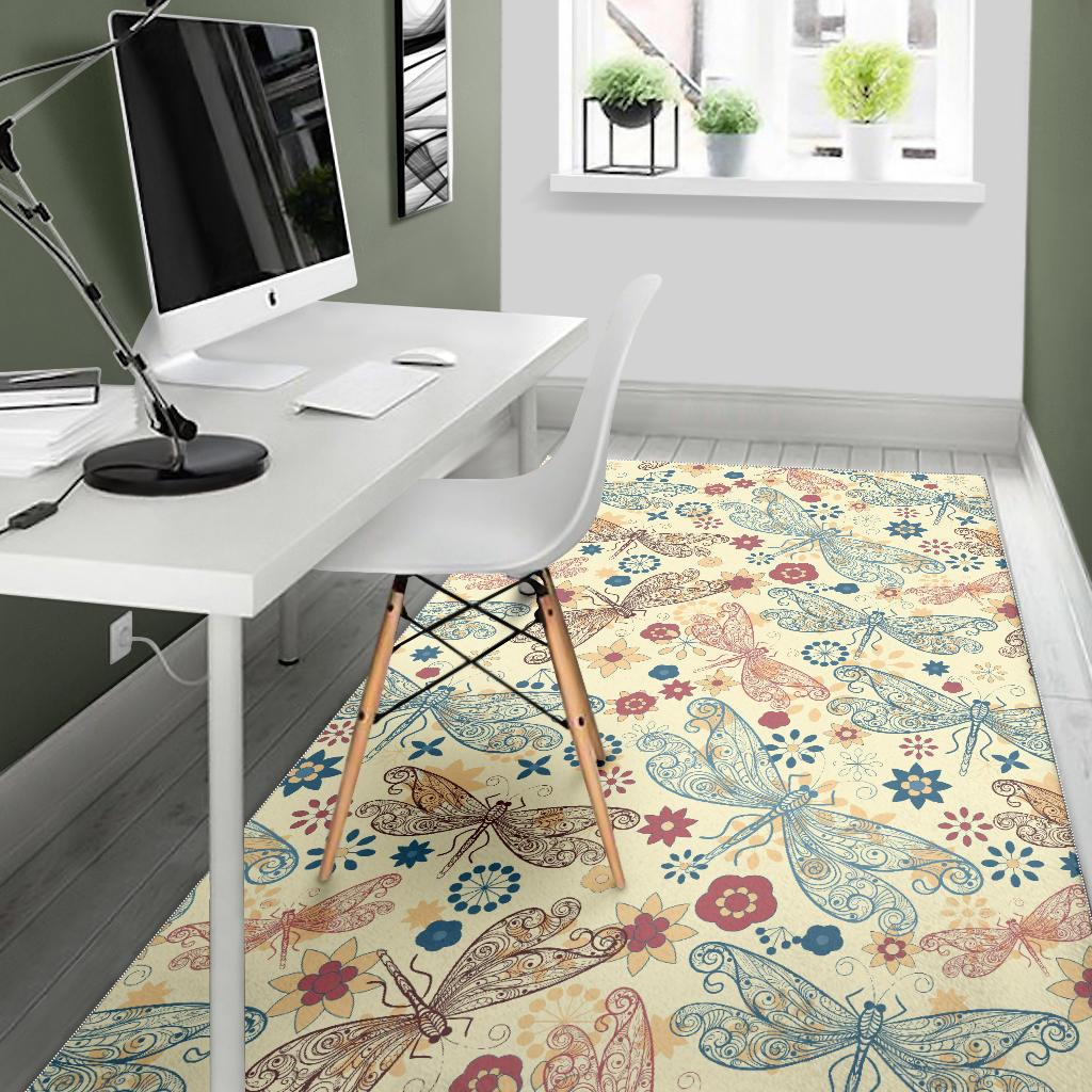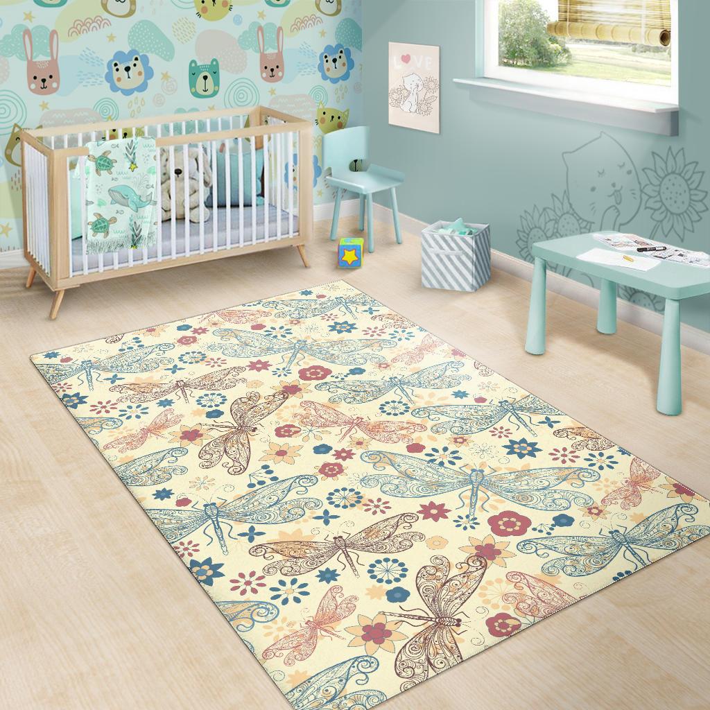 Dragonfly Flower Pattern Area Rug