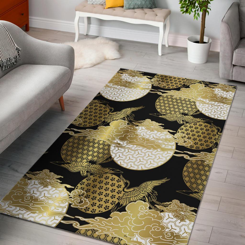 Gold Could Crane Japanese Pattern Area Rug