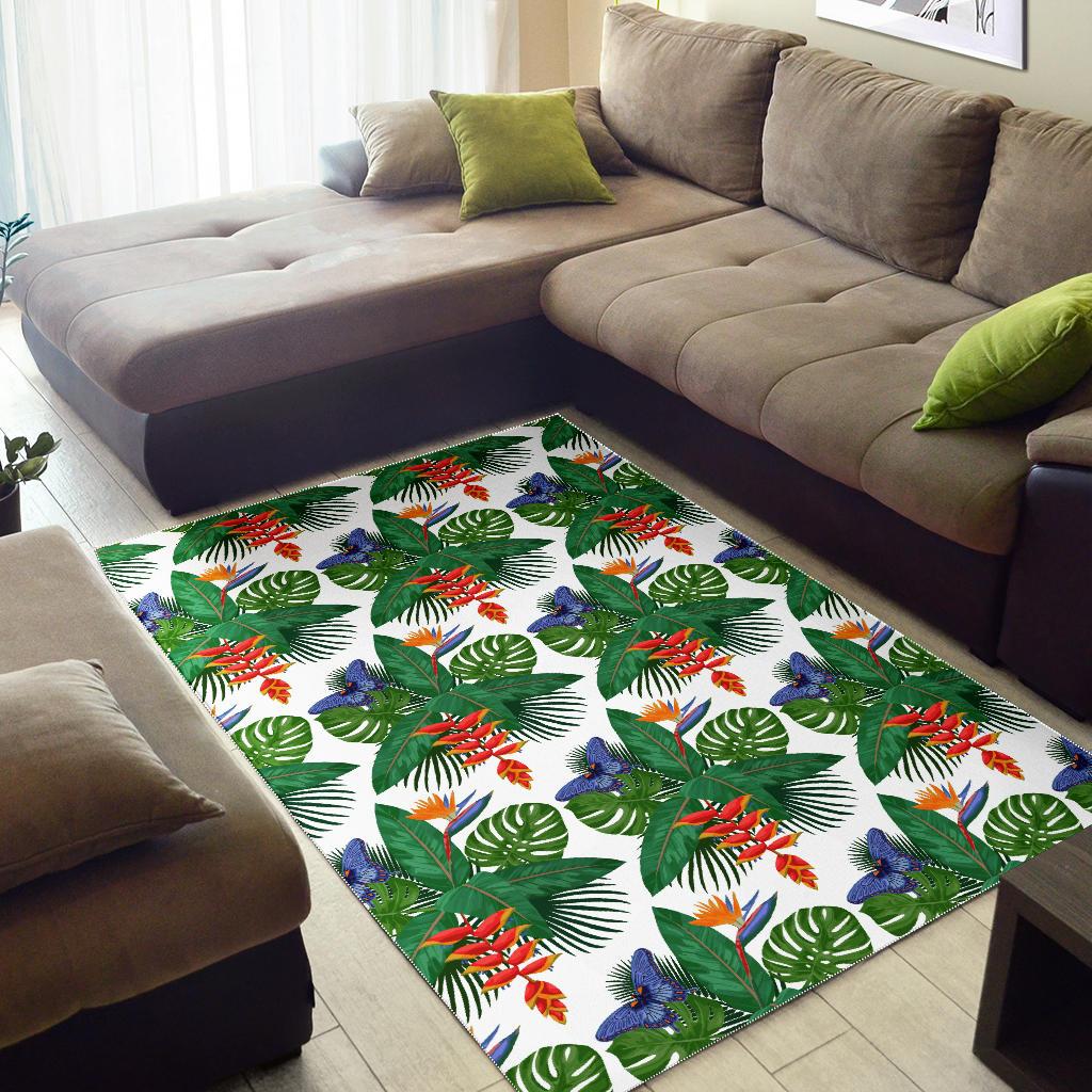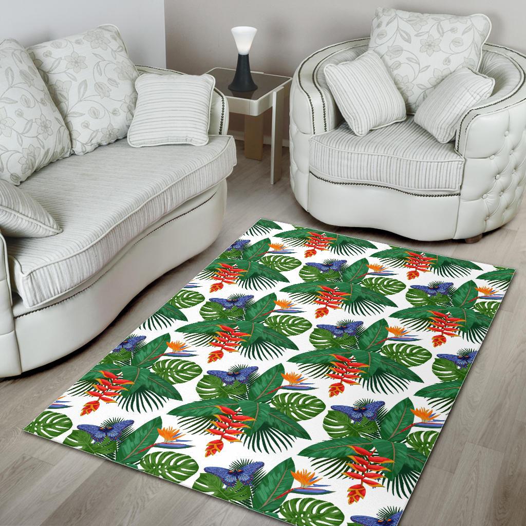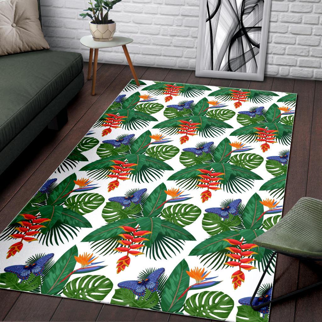 Heliconia Butterfly Leaves Pattern Area Rug