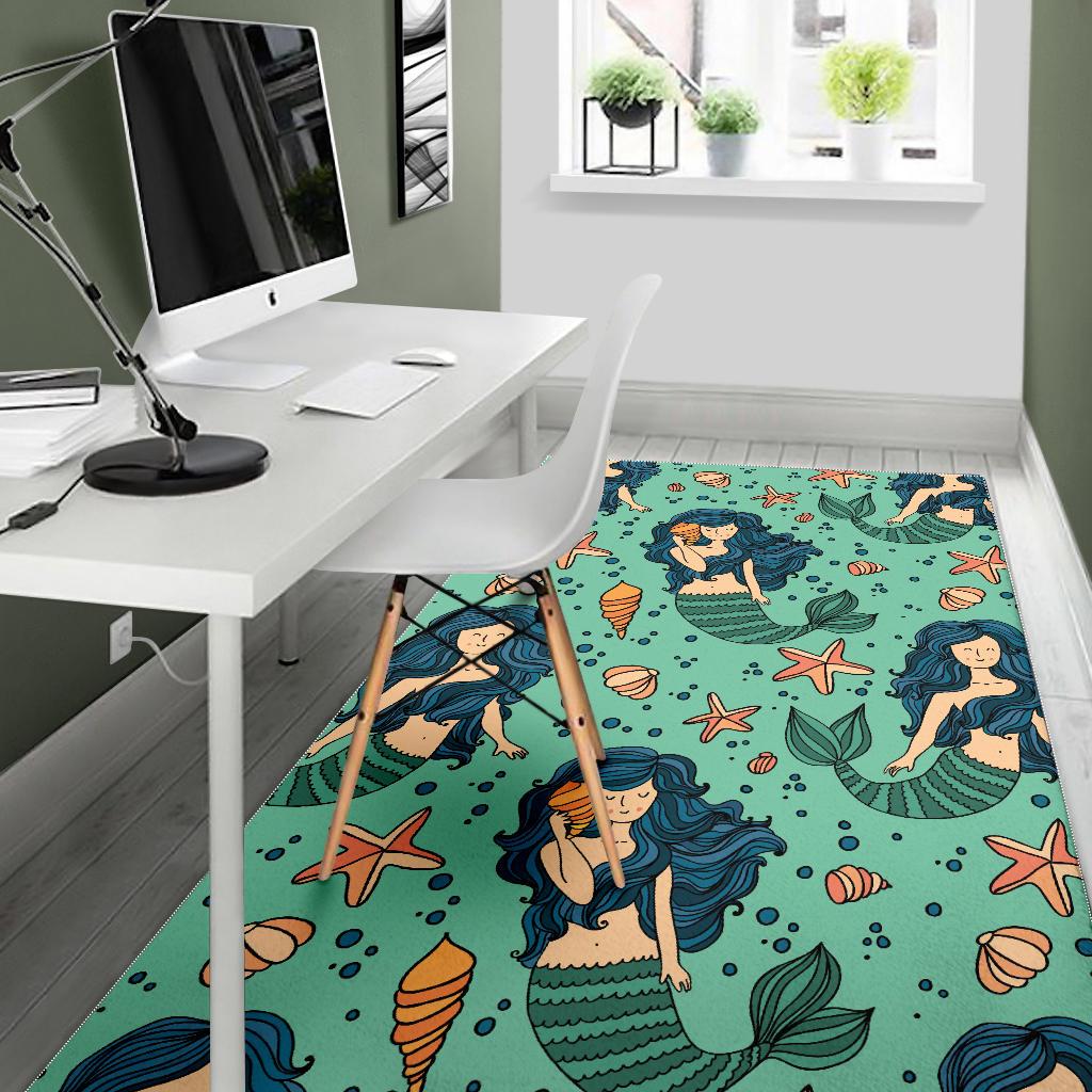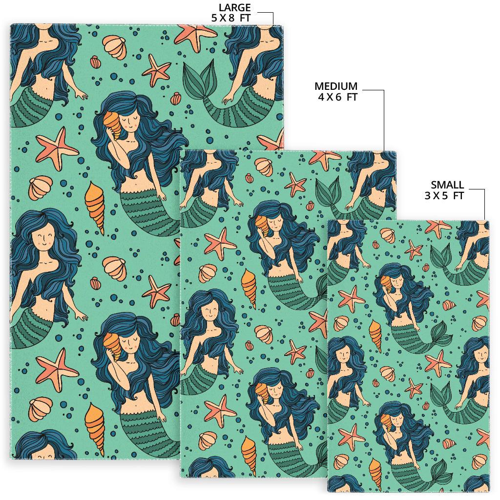 • Load image into Gallery viewer, Mermaid Pattern Green Background Area Rug