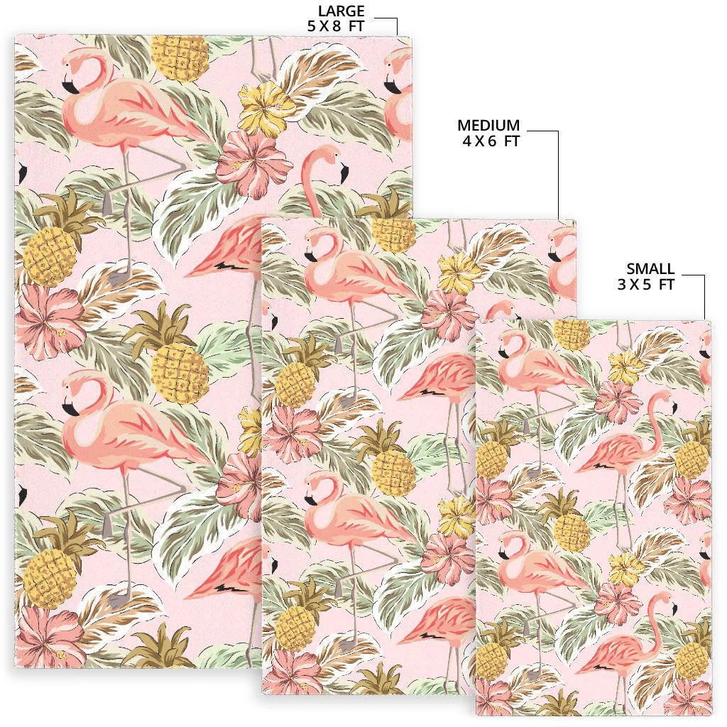Pink flamingo birds pineapples hibiscus flower pattern Area Rug
