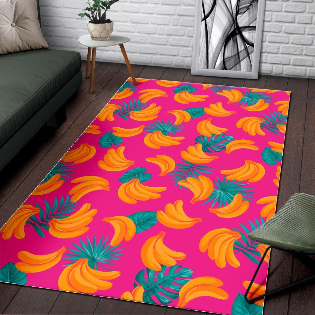 • Load image into Gallery viewer, Pink Tropical Banana Pattern Print Area Rug