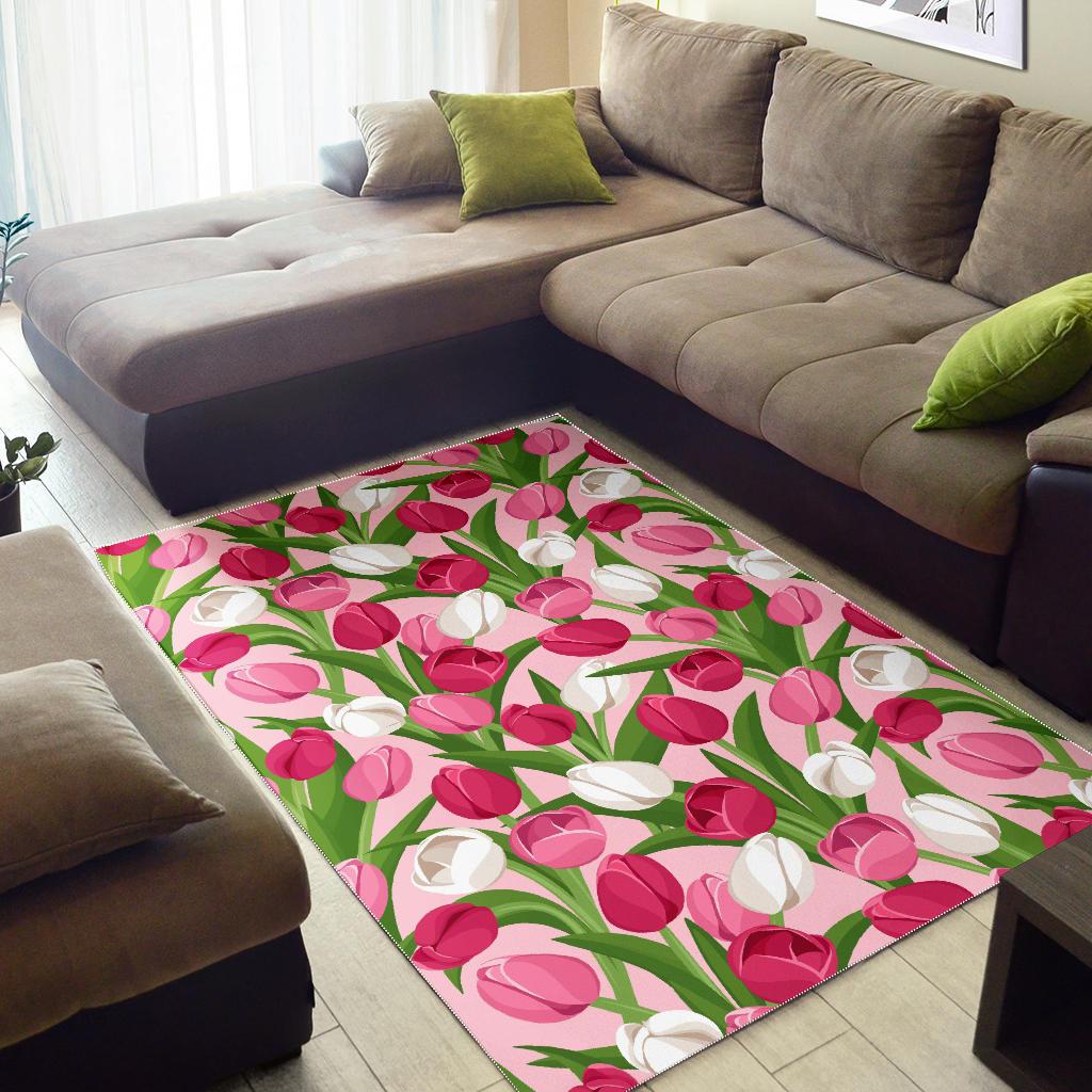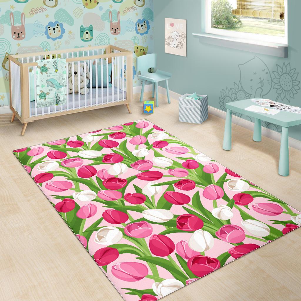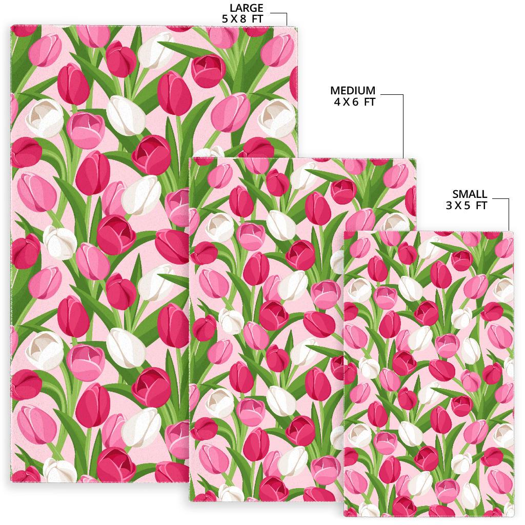 • Load image into Gallery viewer, Pink White Tulip Pattern Area Rug