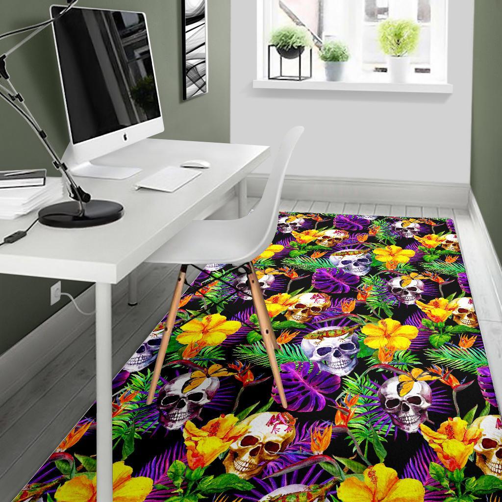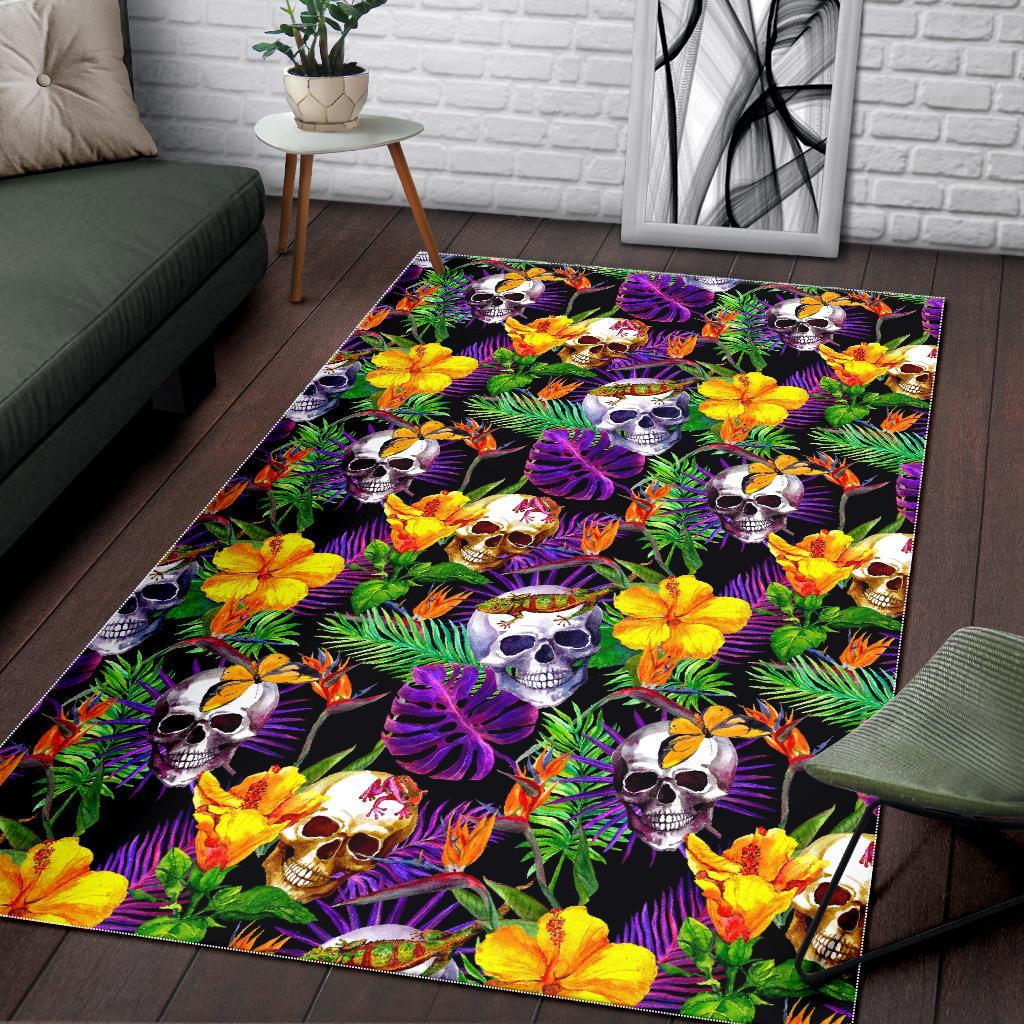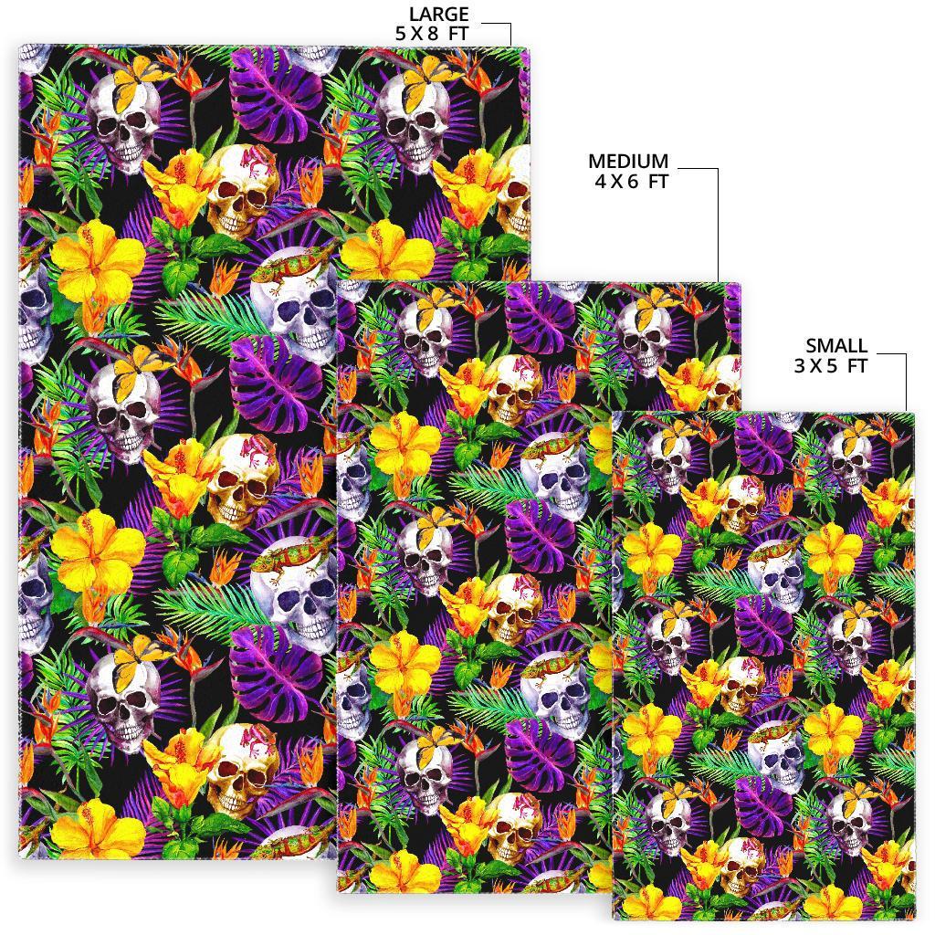 Purple Tropical Skull Pattern Print Area Rug