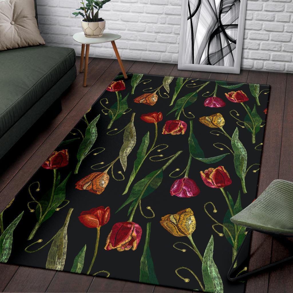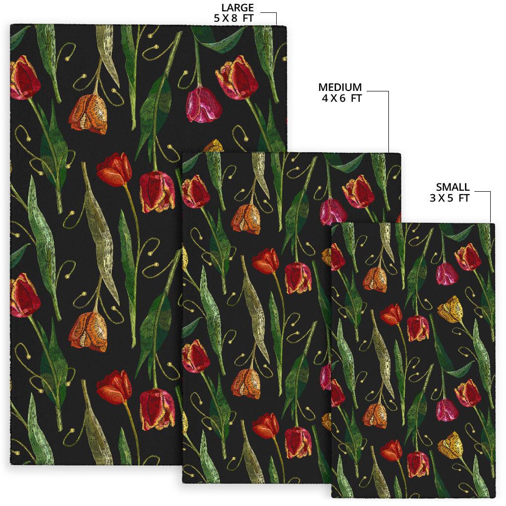 Tulip Embroidered Pattern Print Design TP01 Area Rugs