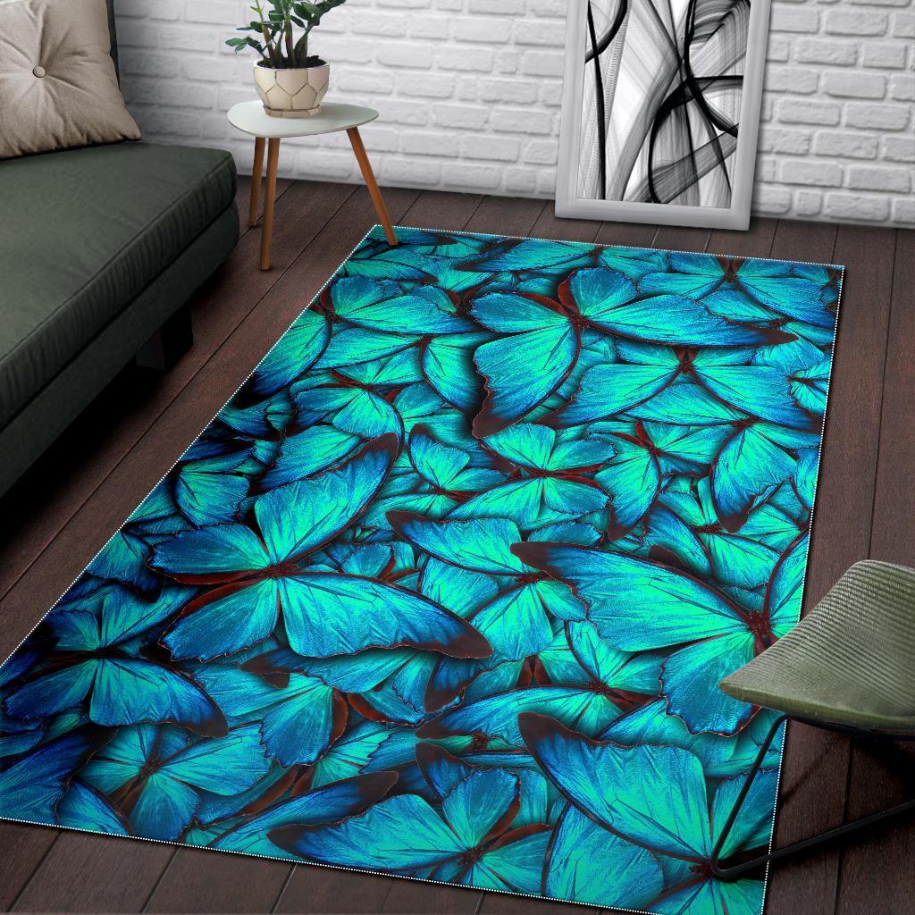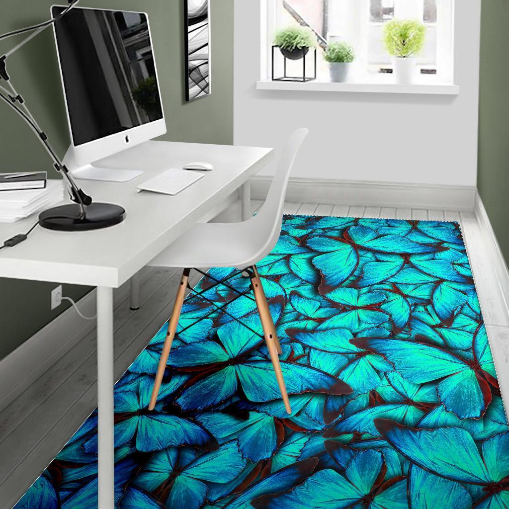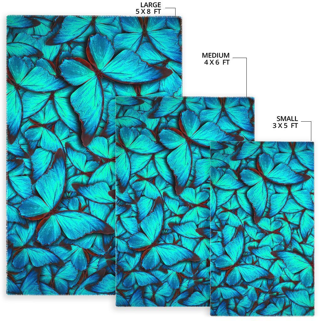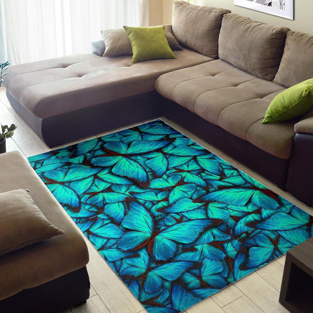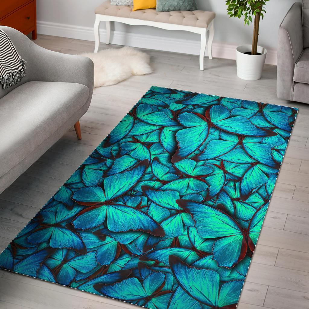 Turquoise Butterfly Pattern Print Area Rug