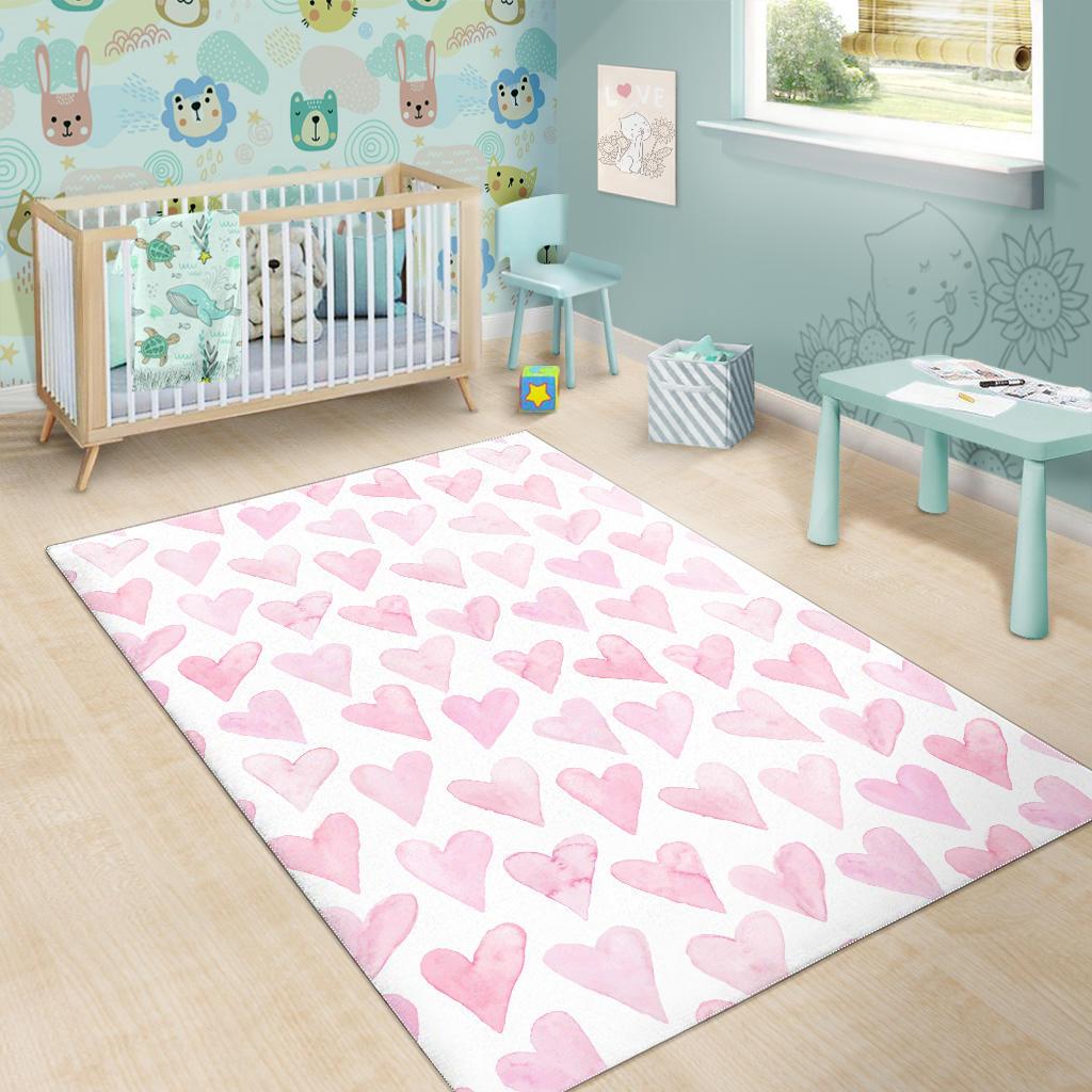 Watercolor pink heart pattern Area Rug