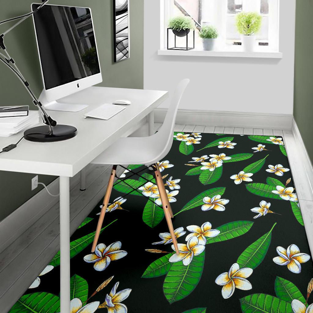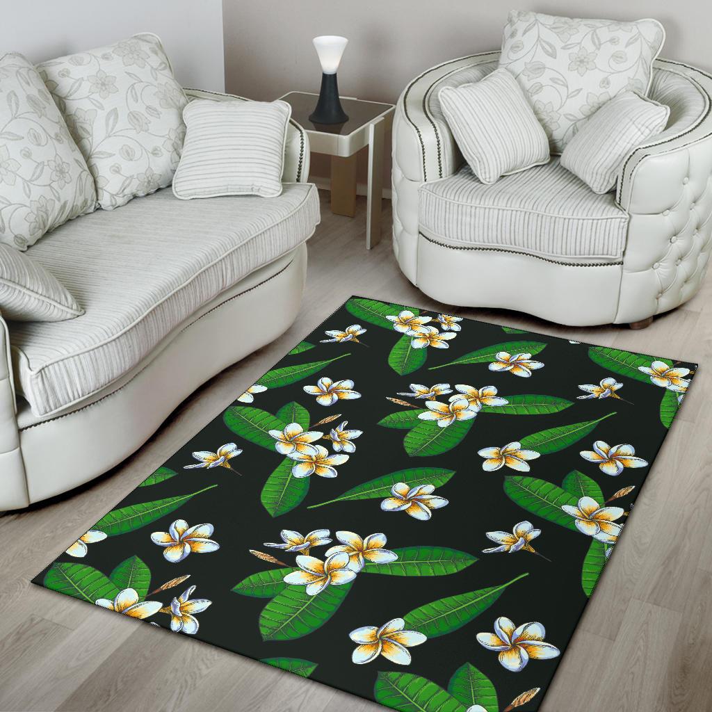 White Plumeria Pattern Print Design PM023 Area Rugs
