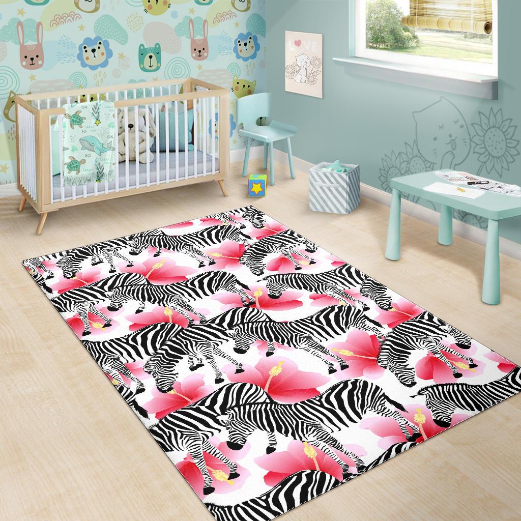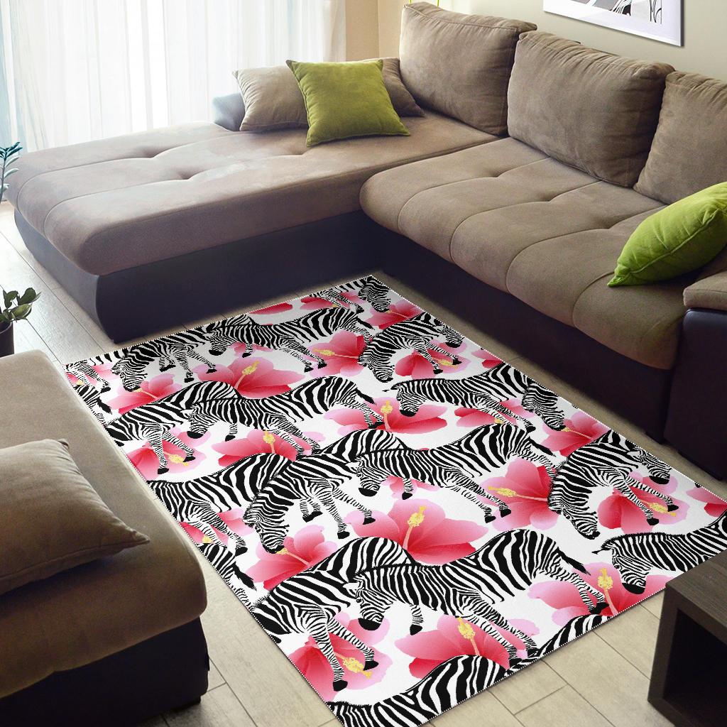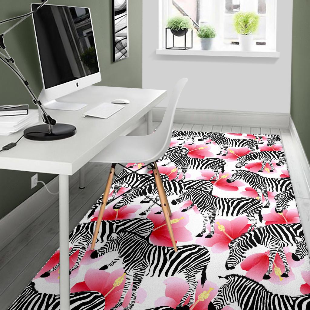 • Load image into Gallery viewer, Zebra Red Hibiscus Pattern Area Rug